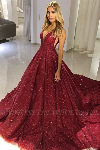 BabyOnlineWholesale has a range of sexy prom dresses in plus sizes to make sure that curvy girls have fashionable options. These sexy dresses come in various styles and colors, making it easy to find the perfect fit for any personal style. This sleeveless red sequin plus size prom dress features a plunging illusion V neck with a side cutout. Its pleated A-line skirt flows to the floor in a sweeping train.