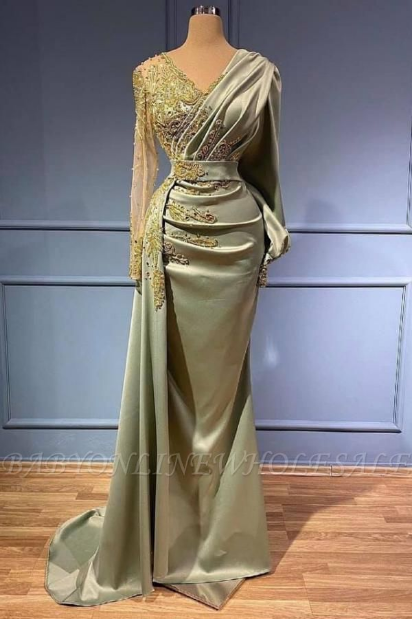 V-neck Mermaid Long Sleeves Prom Dress