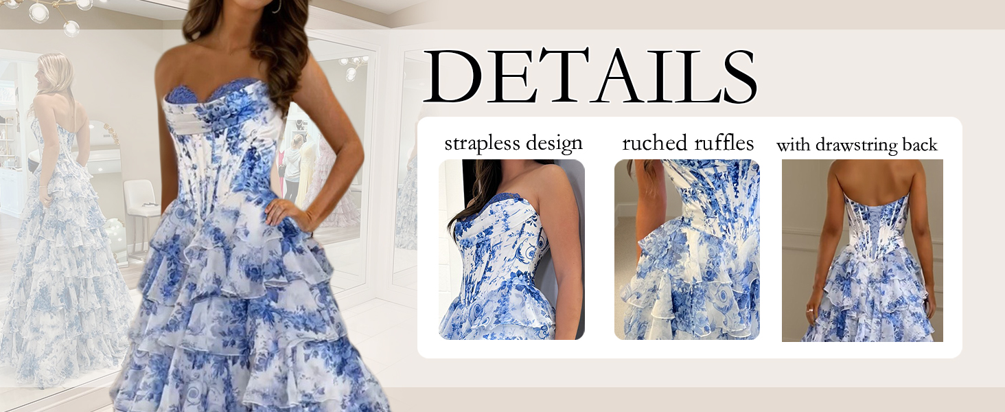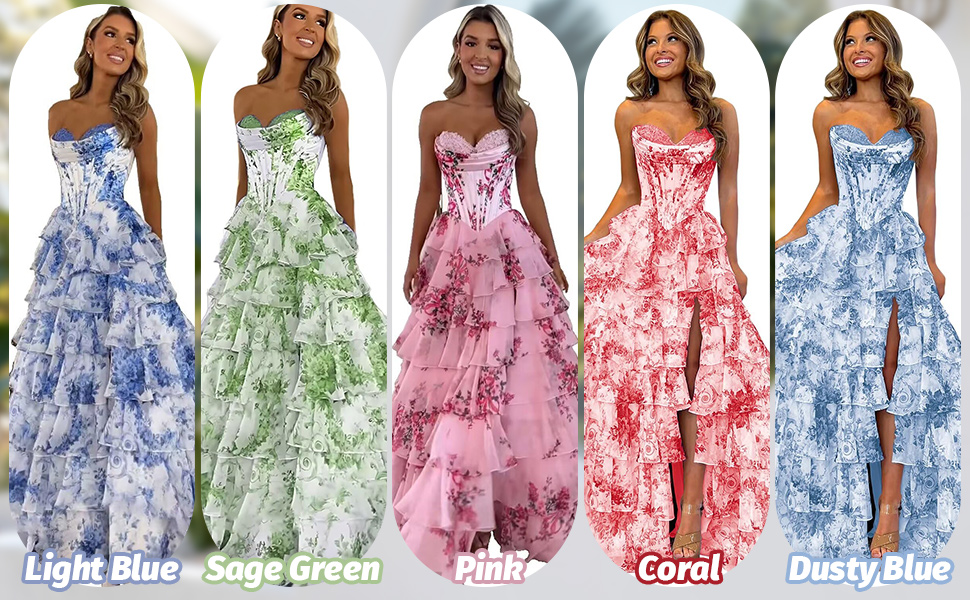 Strapless Chiffon Floral A-Line Long Prom Dresses with Slit